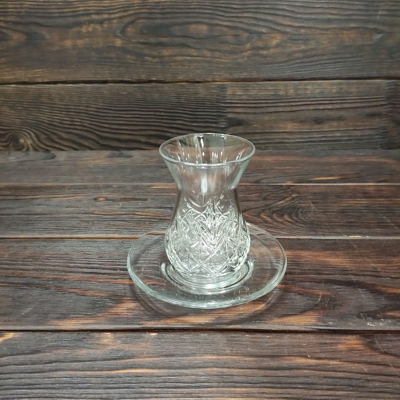 Стеклянный резной турецкий стакан - Армуд с блюдцем