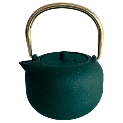 Чайник чугунный Харбин зеленый с золотой ручкой 400мл